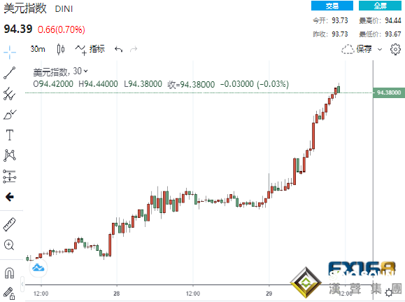 (美元指數30分鍾走勢圖 來源:FX168)